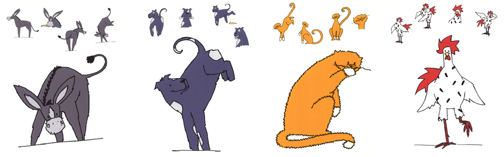 Entwürfe für Zeichentrickfiguren (“Bremer Stadtmusikanten”)
